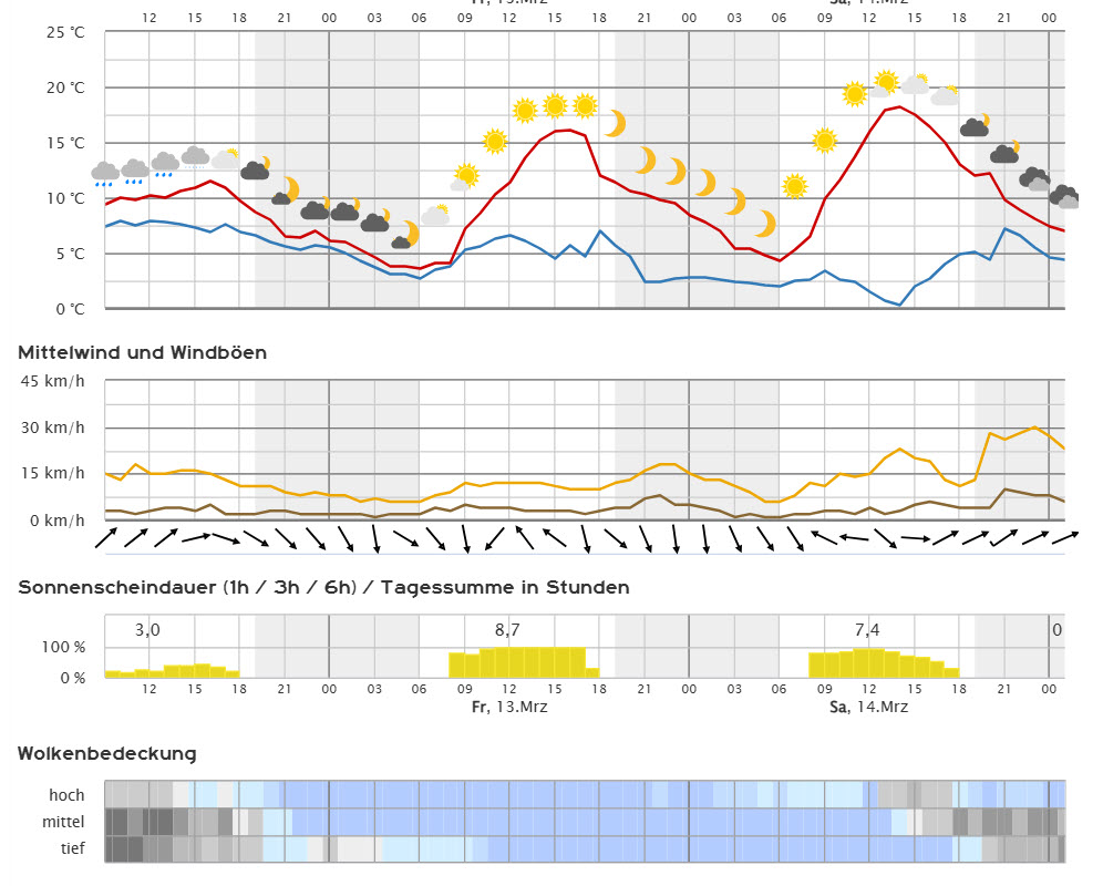 Nochmals warm und sonnig werden der Freitag und der Samstag mit bis zu 17 Grad, ehe uns