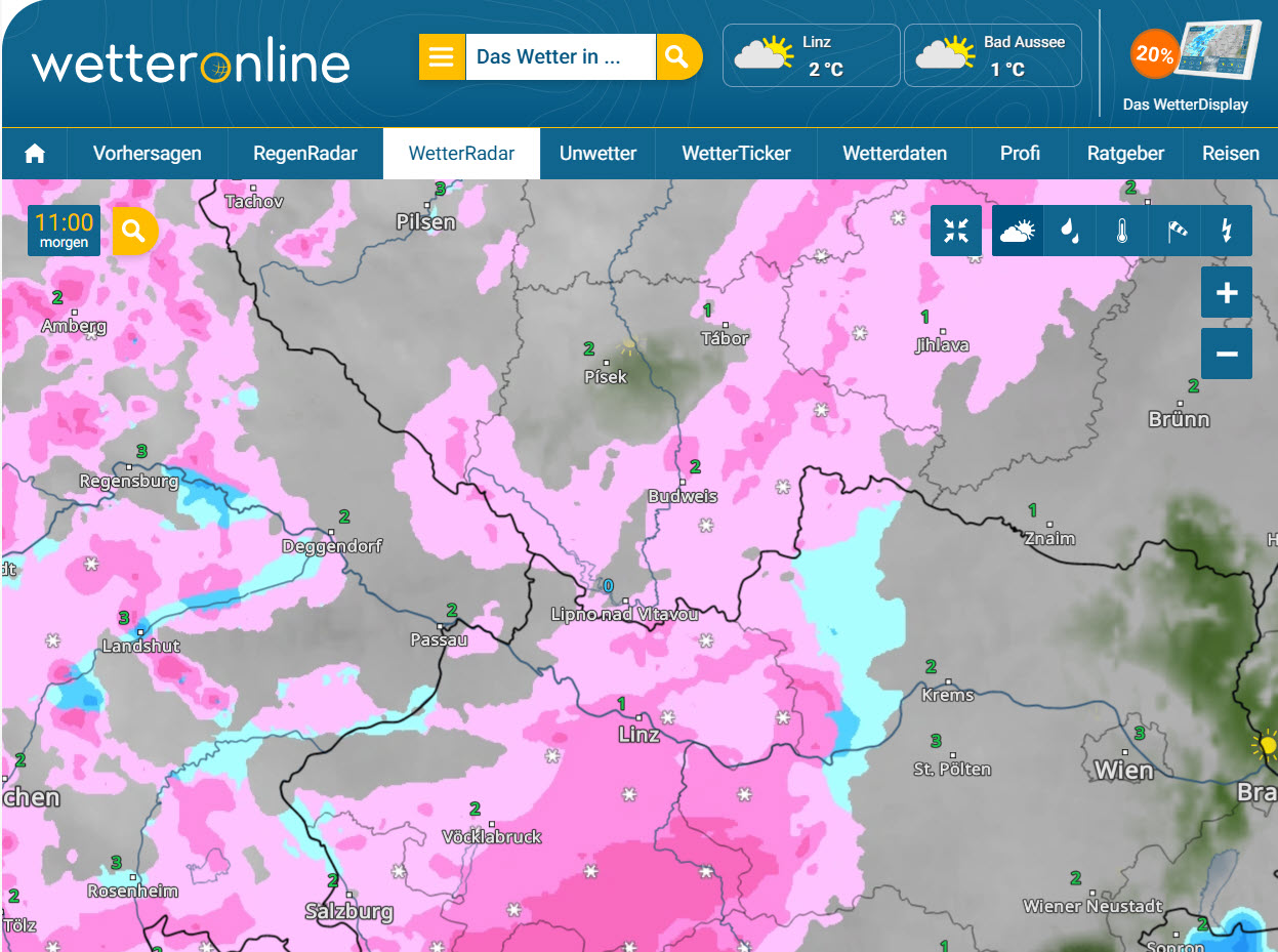 oder Schnee. Besonders die Anhöhen rund um Linz könnten am Vormittag kurz-