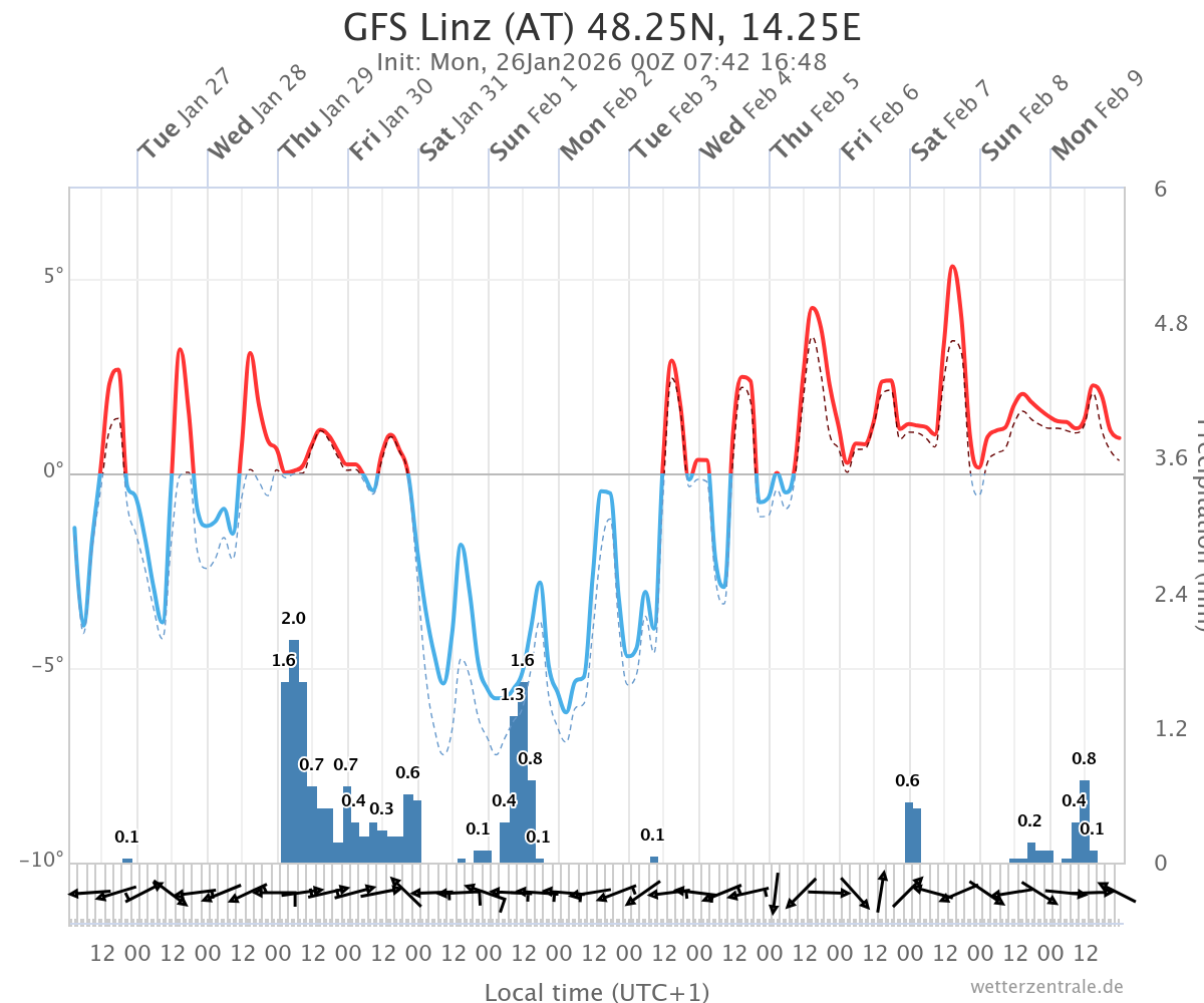 Temperaturen hält das leichte Tauwetter an. Bis zu 4 Grad sind im Zentralraum zu erwarten,